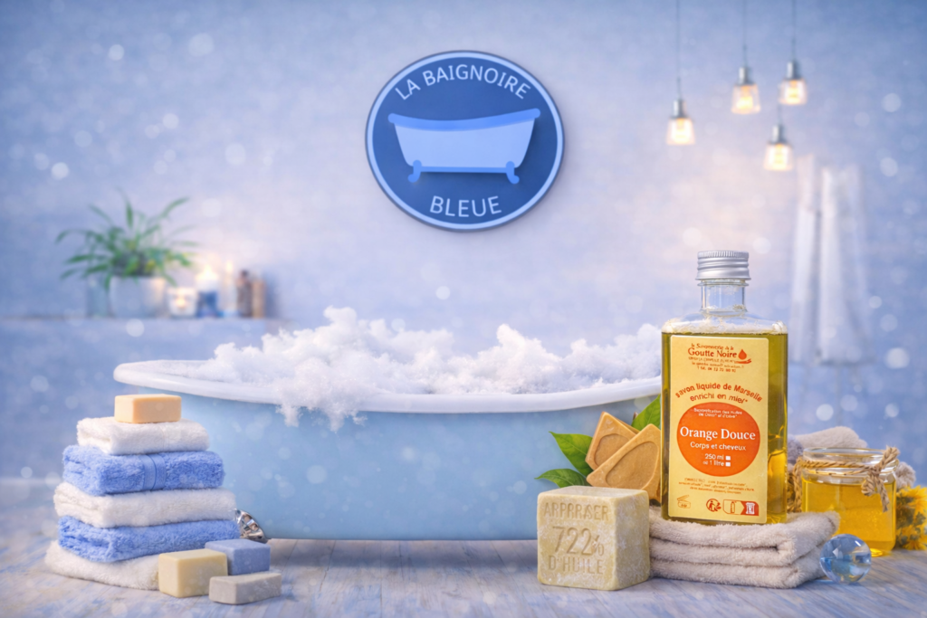 Chez La Baignoire Bleue, nous vous invitons à découvrir notre gamme de savons élaborés avec soin et savoir-faire par La Savonnerie de La Goutte Noire.